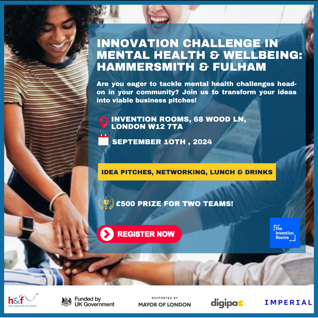 Join us for the "Inclusive Innovation Challenge in Mental Health & Wellbeing" event. This interactive challenge event is your opportunity to transform your ideas into viable business pitches!